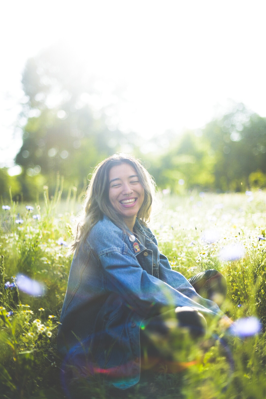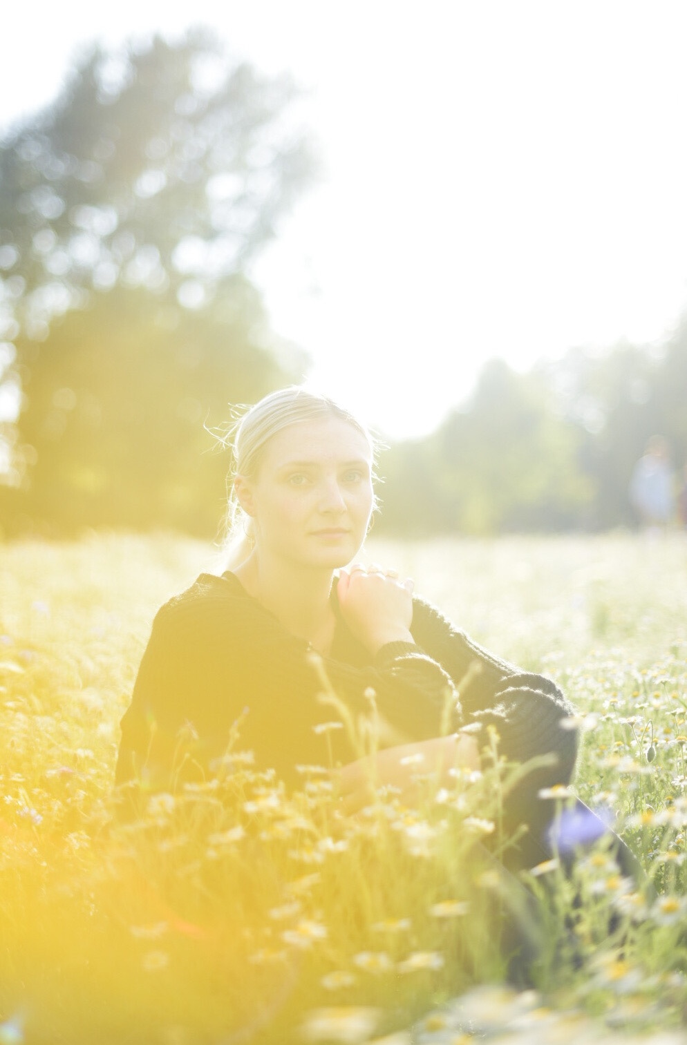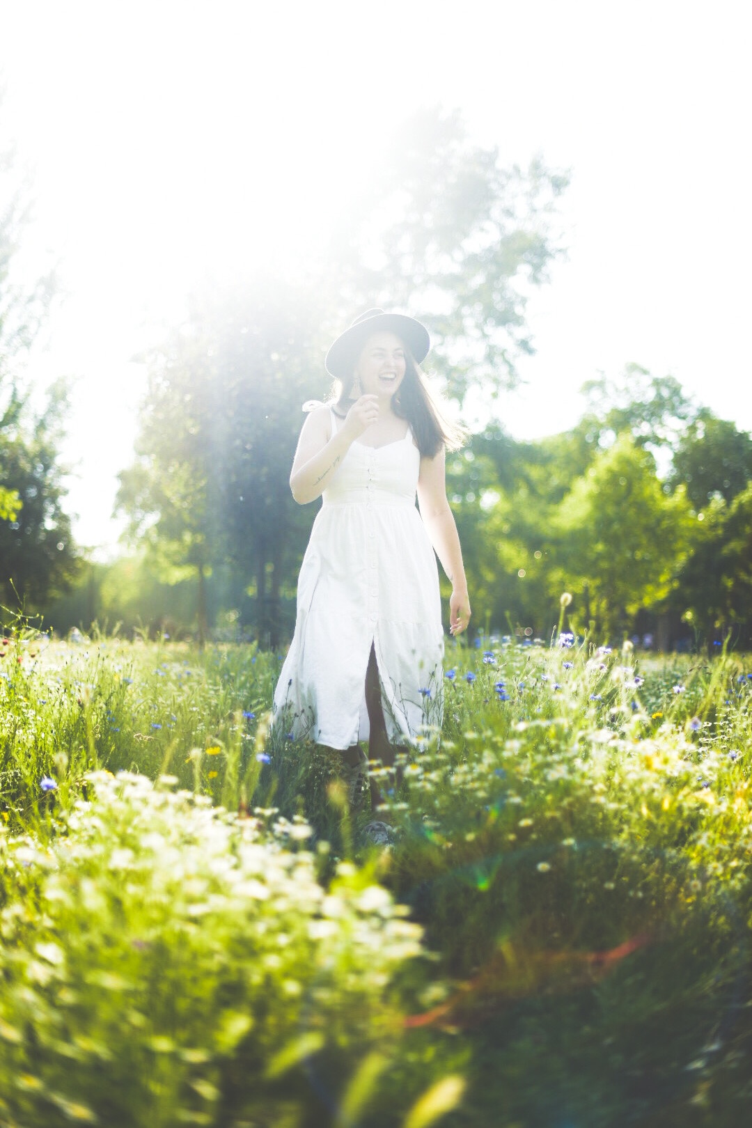 However, the wildflowers have returned to Hackney. Fields of flowers are always inspiring, and when I asked my housemates if they wanted to have a frolic, they were all big down. Martha and I put on dresses, and Meli and Riss donned their finest black jeans, and we threw ourselves into the wildflower field at Hackney Downs. But don’t let these photos fool you – the park was pretty full last night, with our fellow Hackney hipsters having picnics, playing games, (smoking weed), having a drum circle.