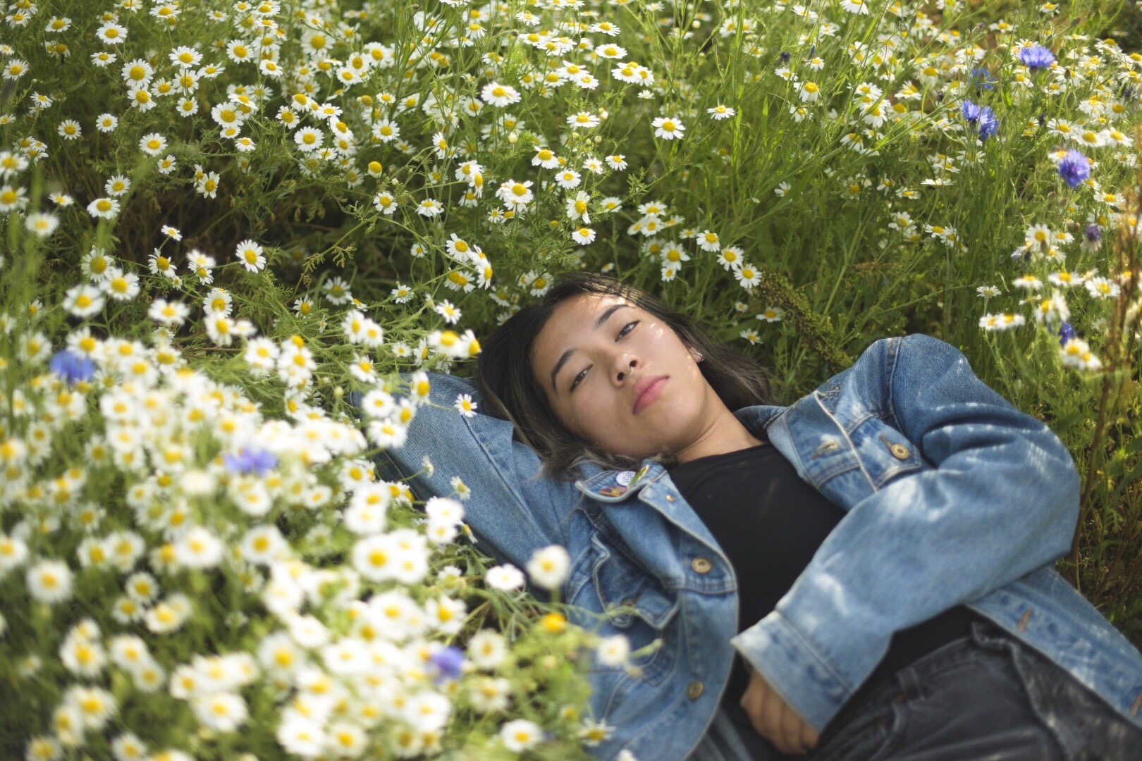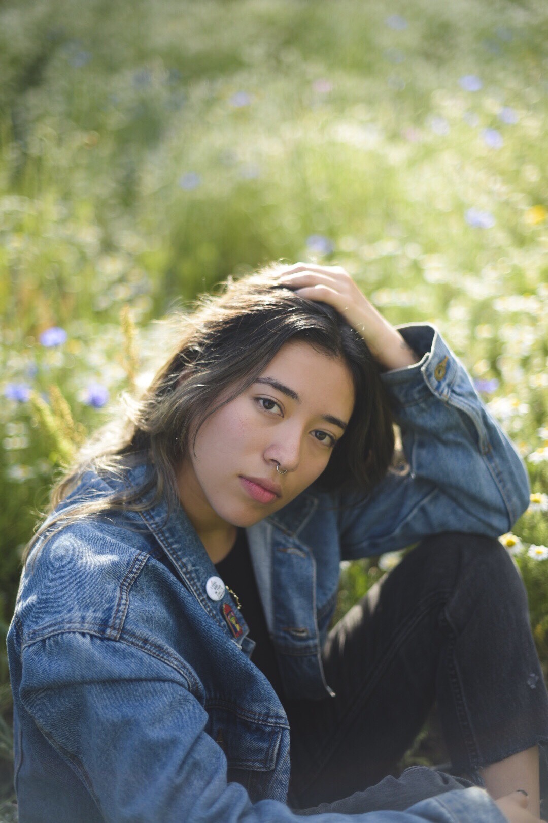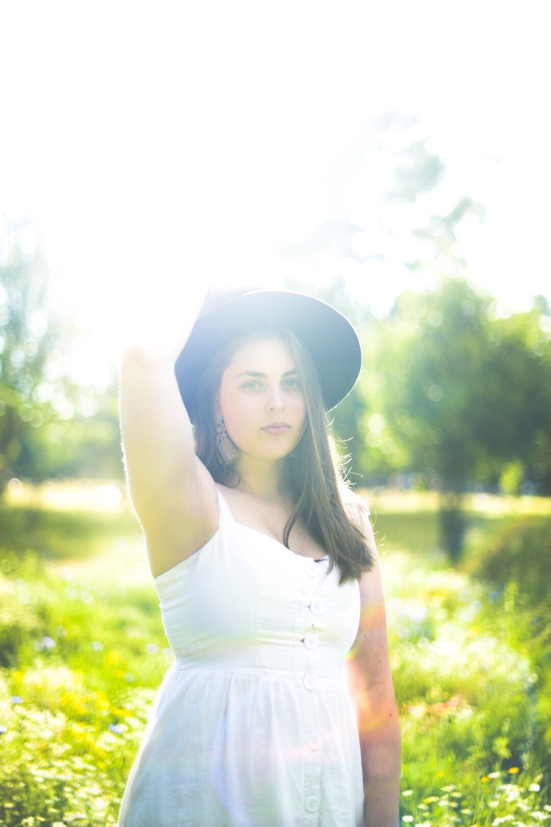 However, the wildflowers have returned to Hackney. Fields of flowers are always inspiring, and when I asked my housemates if they wanted to have a frolic, they were all big down. Martha and I put on dresses, and Meli and Riss donned their finest black jeans, and we threw ourselves into the wildflower field at Hackney Downs. But don’t let these photos fool you – the park was pretty full last night, with our fellow Hackney hipsters having picnics, playing games, (smoking weed), having a drum circle.